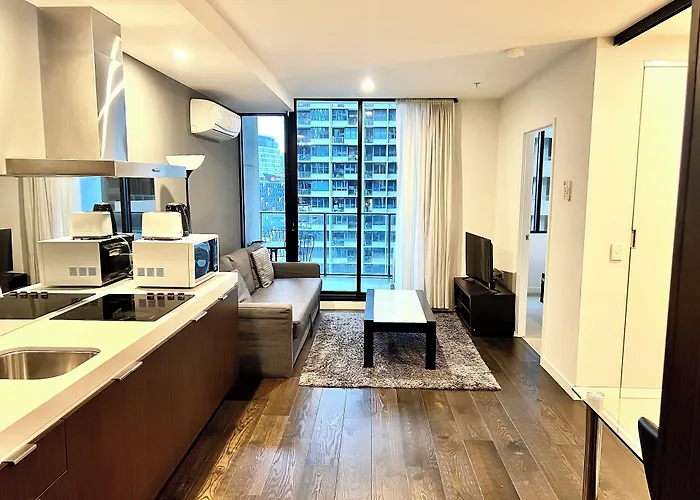 Zu den Annehmlichkeiten für Selbstversorger gehört eine Küche mit einem Wasserkocher, einem Kühlschrank und einem Herd. Die 60 m² großen Unterkünfte ist in unmittelbarer Nähe von der Bushaltestelle Collins Square/Collins Street. Außerdem sorgt ein Hallenbad für einen entspannten Aufenthalt.